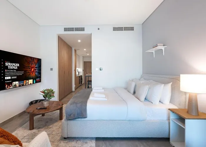 O Brand New Studio For 4 Guests - Near Dubai Mall está localizado a uma distância de 4.4 km de Praia Jumeirah e a 25 minutos a pé de Dubai Mall. Este apartamento dispõe de Wi-Fi, juntamente com parque de estacionamento privado gratuito para os hóspedes que viajam de carro.